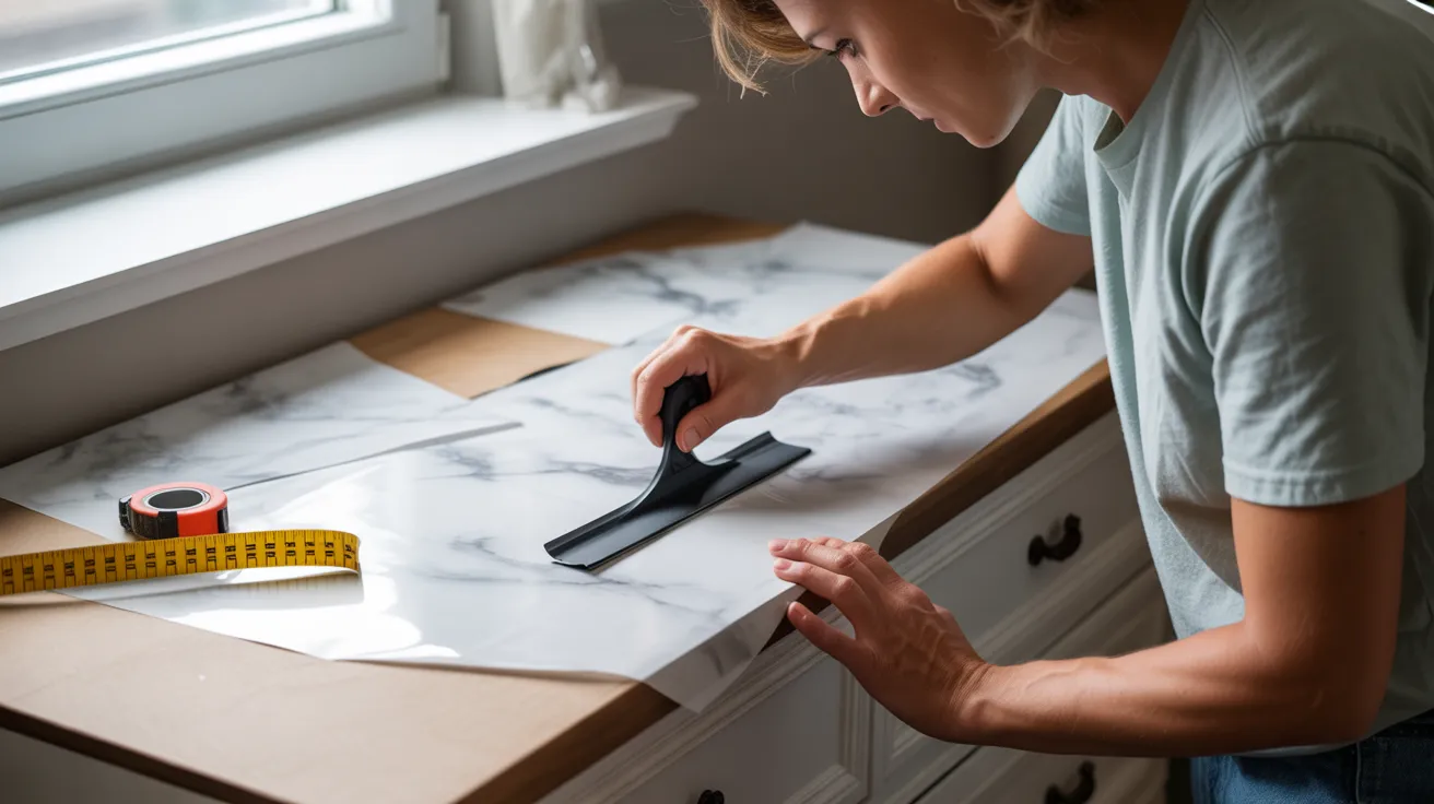 For laminate, paint-and-stick products work best. Always test a small, hidden area before starting. Knowing what you’re working with helps you choose the right tools and avoid mistakes during the makeover.