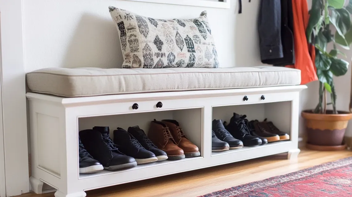 Now it’s a bench with storage underneath. This works well in entryways or at the foot of a bed. It’s a smart way to reuse an old dresser.
