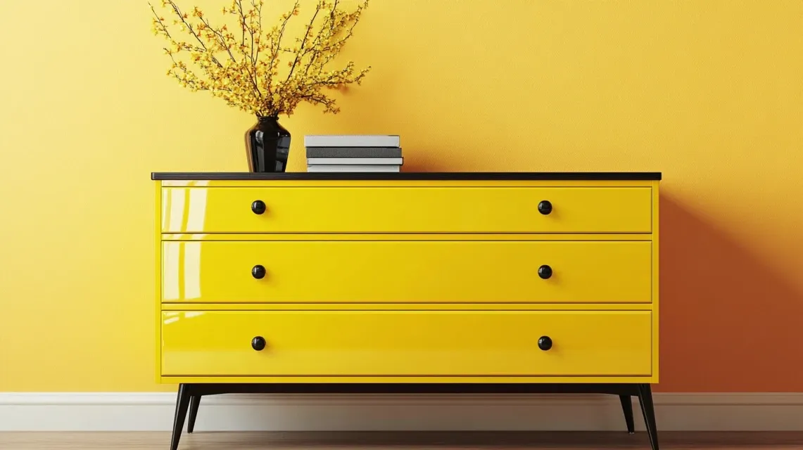 Pick one bright color like red, teal, or yellow and use a shiny gloss paint. This makes the dresser really stand out. It reflects light and makes even old furniture look bold and fresh.