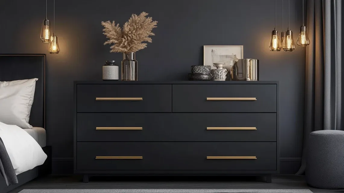 Paint the entire dresser in flat black for a bold and clean look. This style works best on dressers with straight lines and flat drawer fronts.