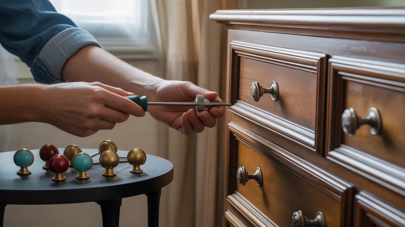 Make sure the size fits the holes you already have. This small update takes only minutes but changes the feel of the dresser right away.