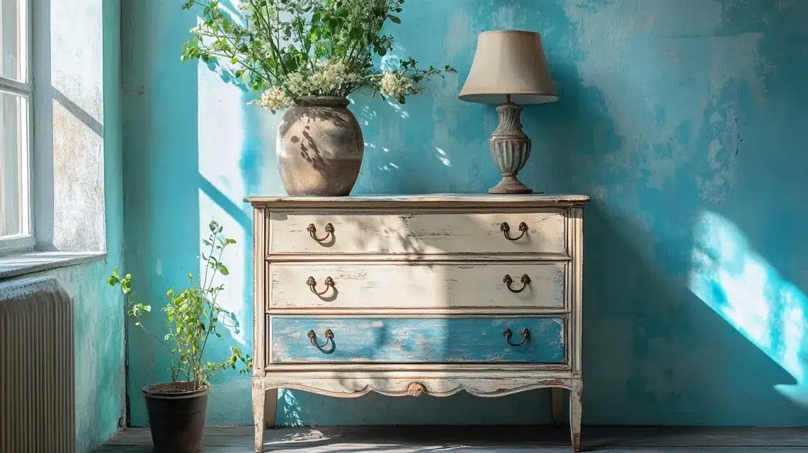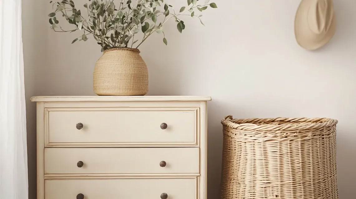 Pick simple colors like beige, gray, or faded blue. It gives your dresser a cozy, used feel that fits well in farmhouse or cottage-style rooms.