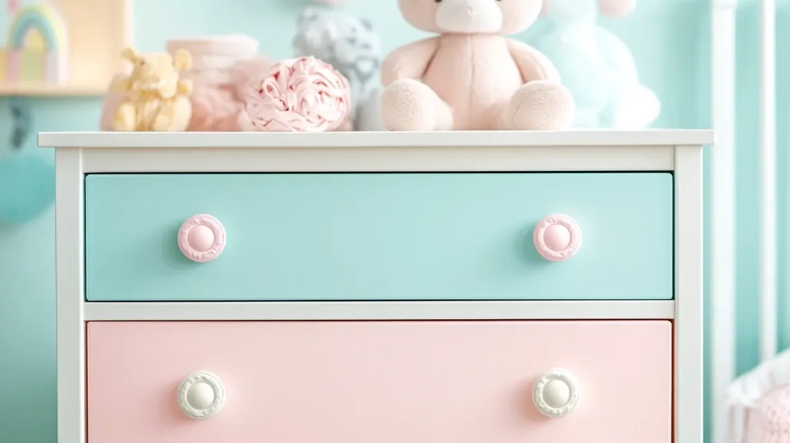 Use pale pinks, mint, sky blue, and soft yellow to paint each drawer. Keep the frame white or light gray. This gives the dresser a gentle, calm look.